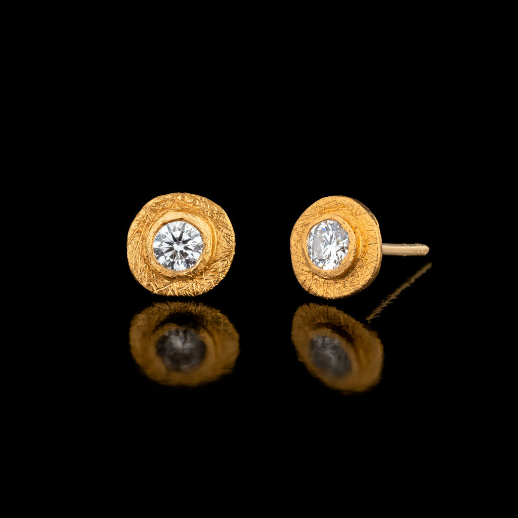 $2,280Round 6mm Textured Gold and Diamond Stud Earrings