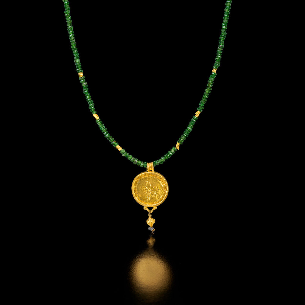 $2,140Tsavorite Necklace with a Gold Circle Pendant