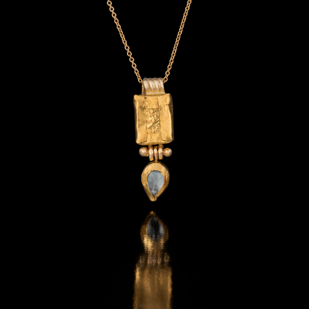 $1,220Gold Rectangle With a Hinged Blue Drop Pendant