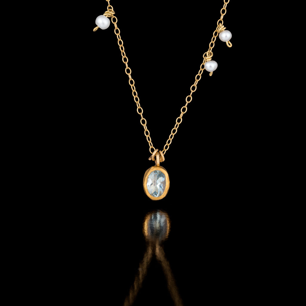 $2,400Oval Aquamarine and Pearls Pendant